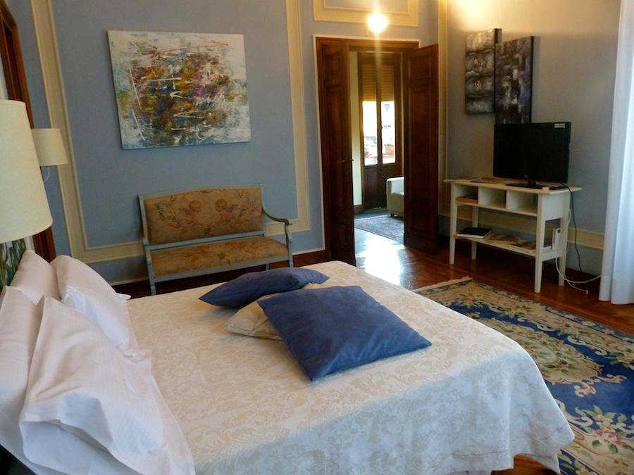 The B&B is handy for the train and bus stations, and for guests arriving by car there is free private parking accessed through a narrow arch in the Via Torre Civica. Step outside and you are right in the historic shopping and nightlife district of the town.